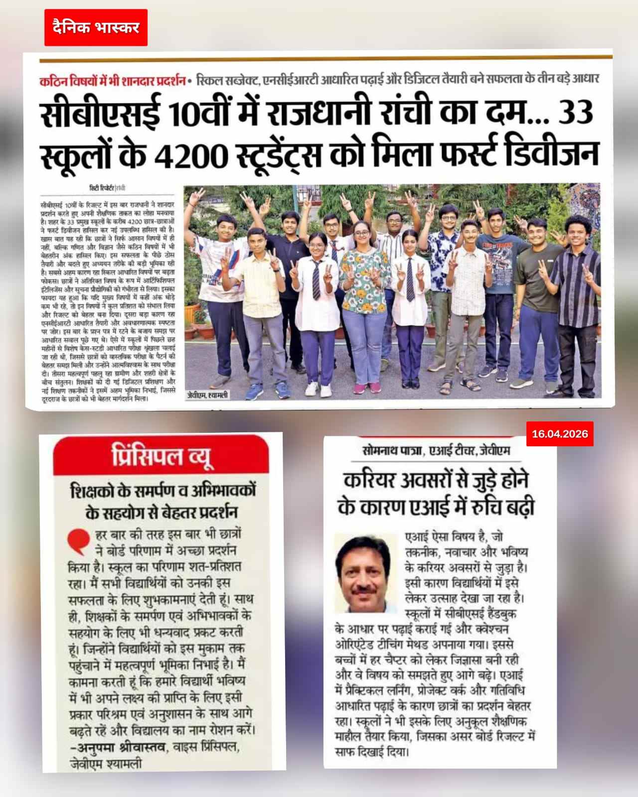 The School imparts education from the Nursery to the Senior Secondary Level. It is permanently affiliated to the Central Board of Secondary Education, New Delhi and is managed by Jawahar Vidya Mandir Education Society, Ranchi.